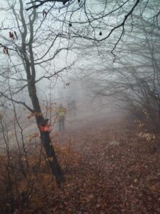 Αφού πάρουμε το πρωινό μας ξεκινάμε με το πούλμαν για την θέση Παλιοχώρι στα 1120μ όπου βρίσκεται το Κέντρο Περιβαλλοντικής Ενημέρωσης του Δασαρχείου Γουμένισσας και είναι το σημείο εκκίνησης του μονοπατιού. Αρχικά κινούμαστε σε χωματόδρομο μέχρι να συναντήσουμε το παλιό λιθόστρωτο μονοπάτι.Στο τέλος του μια πινακίδα μας οδηγεί στο μονοπάτι για την κορυφή και στην καρδιά του δάσους απο πυκνές οξιές και ένα χαλι απο φύλλα και χρώματα!
