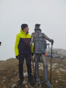 Μέσα απο αυτή την πανδαισία αρωμάτων και χρωμάτων θα φτάσουμε μέχρι το οροπέδιο που απλώνεται κάτω απο την κορυφή με τον χαρακτηριστικό μεταλλικό στρατιώτη. Ένα τελευταίο “ανέβασμα” και βρισκόμαστε στα 1620μ της Γκόλα Τσούκα “ Γυμνή Κορυφη” απο το σλαβικό gola = γυμνη΄.